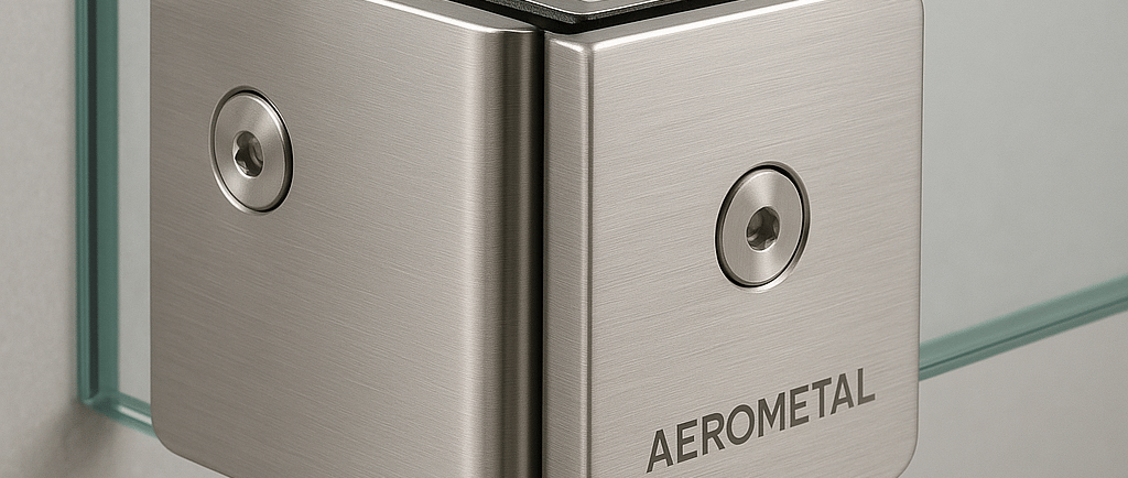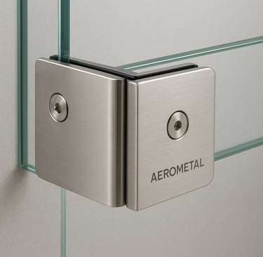 The Aerometal Glass Connector is designed for precision, strength, and modern aesthetics. Whether you are installing a shower enclosure, partition, or glass railing, this 90° glass-to-glass clamp ensures a seamless connection with maximum durability.