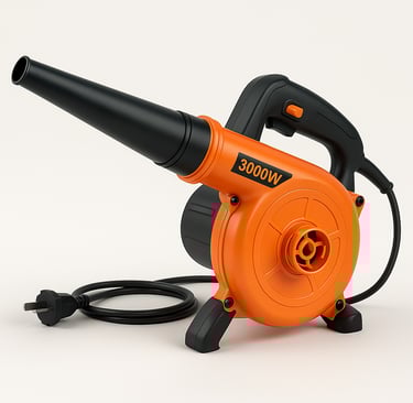 The blower arrived with a compact yet robust design. Its bright orange body contrasted with the black nozzle and handle, giving it a modern, industrial look. The 3000W motor rating was prominently displayed, emphasizing its power, while the ergonomic handle provided a comfortable grip for extended use.