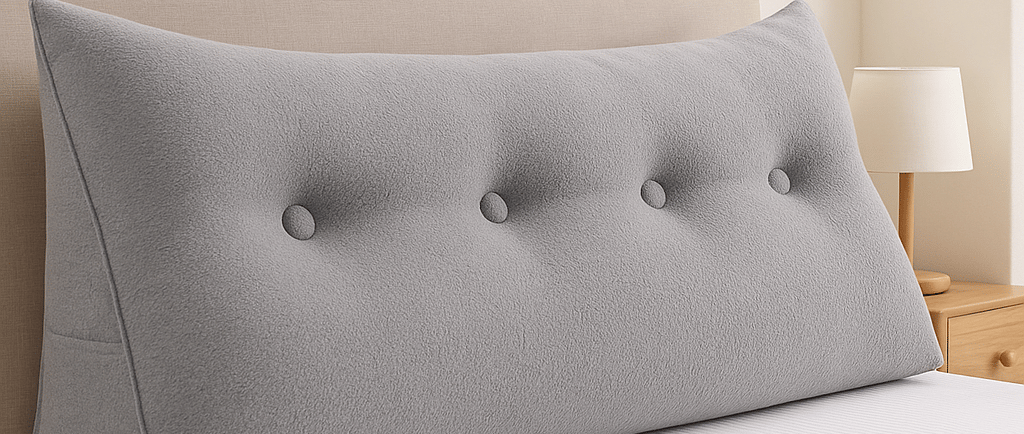 This pillow is a long, angled cushion that sits against your headboard, providing gentle yet firm support for your back, neck, and shoulders. Covered in soft fleece, it’s both stylish and inviting—ideal for long hours of relaxation.