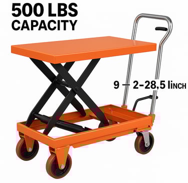 For workshops, warehouses, garages, and repair facilities, reliable lifting equipment is essential. The Hydraulic Scissor Lift Table Cart is engineered to simplify material handling, reduce physical strain, and improve efficiency. With a 500 lbs load capacity and an adjustable height range of 9 to 28.5 inches, it delivers powerful, stable lifting support for a wide range of tasks.