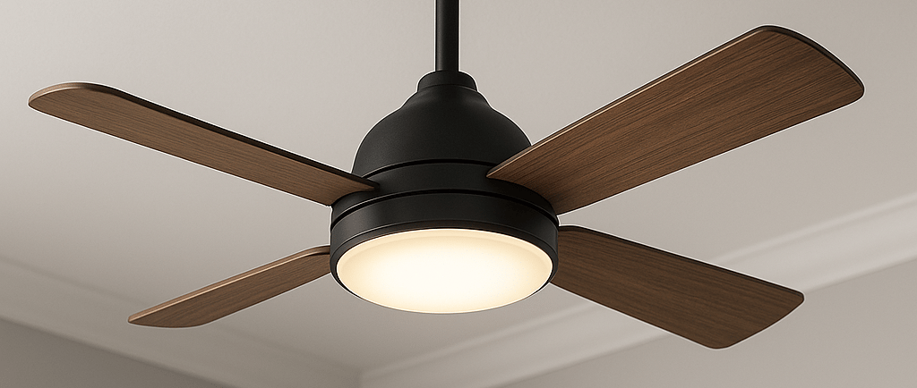 Modern LED ceiling fan with light, 3-speed settings, dimmable lighting, and timer function. Energy-efficient, quiet, and perfect for any modern room.