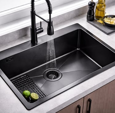 With its clean lines, bold black finish, and functional design, the Nano Black Kitchen Single Bowl Sink Stainless integrates seamlessly into contemporary, industrial, or minimalist kitchen styles. It pairs well with black, chrome, or brushed metal fixtures.