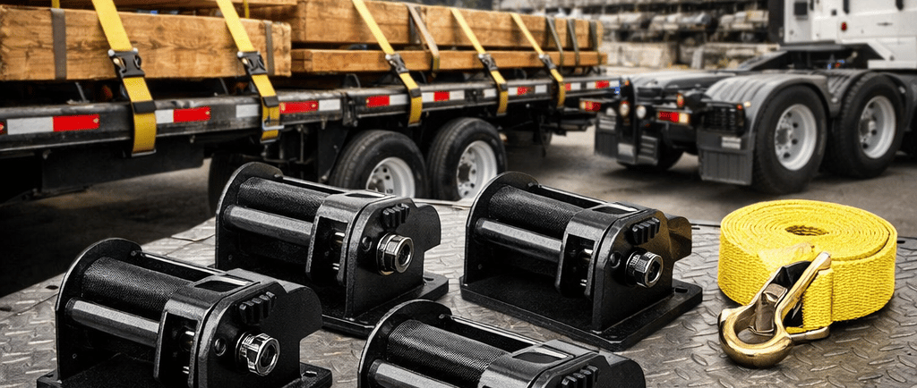 Built for flatbed trailers and trucks, these winches help you maintain optimal load tension during transport, reducing cargo movement and improving overall road safety. Whether you’re hauling construction materials, industrial equipment, lumber, or general freight, these winches deliver consistent performance in demanding conditions.