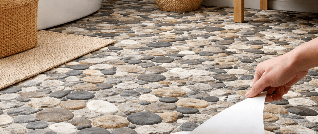 Whether used for a full room makeover or a small accent area, peel and stick river rock tiles provide flexibility. They can be trimmed for custom layouts and removed more easily than traditional flooring, making them especially appealing for rental properties or temporary design updates.