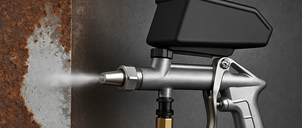 This tool uses compressed air to propel abrasive media—such as sand, glass beads, or aluminum oxide—onto a surface. The high-speed stream of particles effectively removes unwanted coatings and smooths rough edges, preparing materials for painting, welding, or finishing.