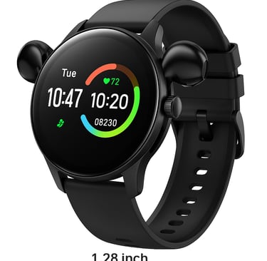 Stay connected and fit with a 3-in-1 Smart Watch featuring built-in earbuds and a round 1.28-inch display.