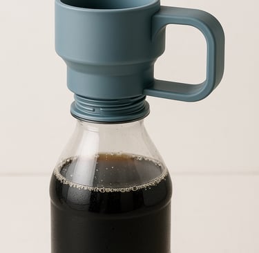 Portable mug format that fits most standard bottle mouths.